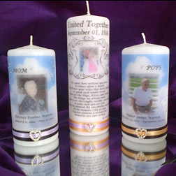 Light the flame that lasts forever, personalized candles for your loved ones. Add a special message and picture. We can create a beautiful keepsake as a lasting memory for that special someone. Please contact us with questions and inquiries.